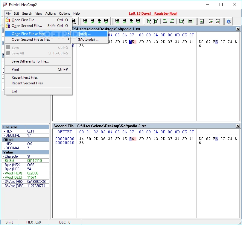 HexCmp 2 to oprogramowanie do porównywania i tworzenia plików opracowane przez Fairdell Software. Narzędzie jest bardzo dobrze zaprojektowane i przeznaczone specjalnie dla systemu Windows. Łączy w sobie aplikację do porównywania plików binarnych i edytor szesnastkowy, umożliwiając użytkownikom porównywanie nie tylko plików binarnych, ale także plików tekstowych w locie.